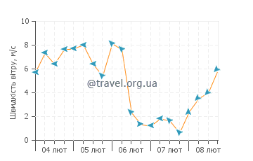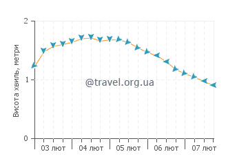 На графіках вказана висота та напрямок хвиль, а також швидкість та напрямок вітру Брейдс на найближчі дні. Натисніть на графік стану моря, щоб дізнатися більше