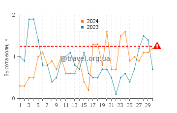Изменения температуры воды в Лаханье в апреле 2025, 2024