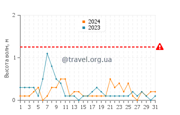 Чтобы получить точный прогноз температуры воды на острове Рюген в августе, сравните два года в пределах 10-летнего диапазона, используя форму ниже. Также вы можете посмотреть данные в виде графика изменения температур в августе. Помимо температуры морской воды на острове Рюген, для выбранных лет в таблице также указаны значения максимальных и минимальных температур в каждый из дней в августе.