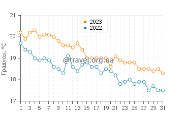 Вы также можете посмотреть информацию о температуре воды и для других месяцев, нажав на кнопку месяца ниже