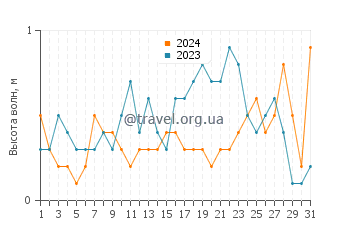 Чтобы получить точный прогноз температуры воды в Дение в мае, сравните два года в пределах 10-летнего диапазона, используя форму ниже. Также вы можете посмотреть данные в виде графика изменения температур в мае. Помимо температуры морской воды в Дение, для выбранных лет в таблице также указаны значения максимальных и минимальных температур в каждый из дней в мае.