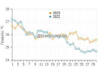 | 1 сентября | 26.5°C | 28.3°C | 26°C | 28.3°C |